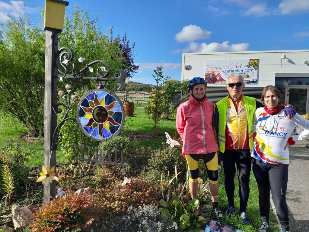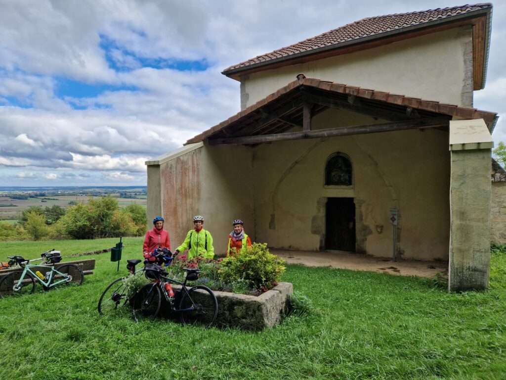 Quatre téméraires ou optimistes se retrouvent au rendez-vous sous un ciel gris. L’objectif est d’atteindre Domgermain en début d’après-midi pour diverses visites. Nous allons donc « tricoter » à travers les paysages des Côtes de Toul. Le ciel se dégage et quelques éclaircies nous prouvent que nous avions raison d’y croire !