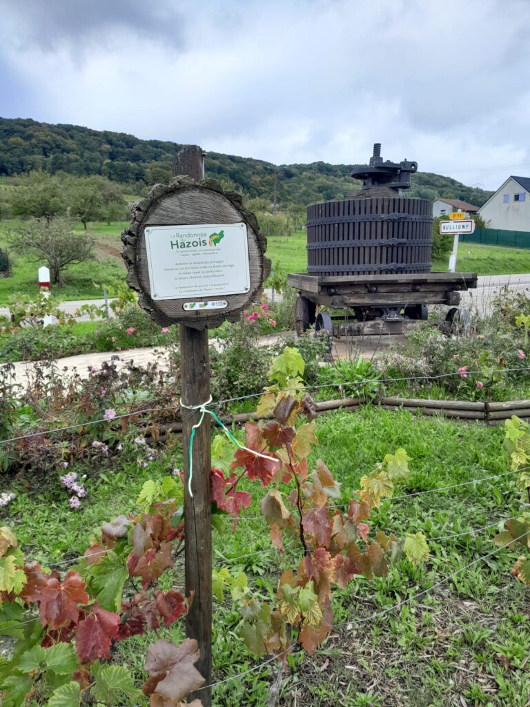 A Bulligny, un espace de verdure à l’entrée du village, met en valeur la viticulture avec un beau pressoir. Les vignes plantées là, nous permettent de goûter au raisin, très bon !