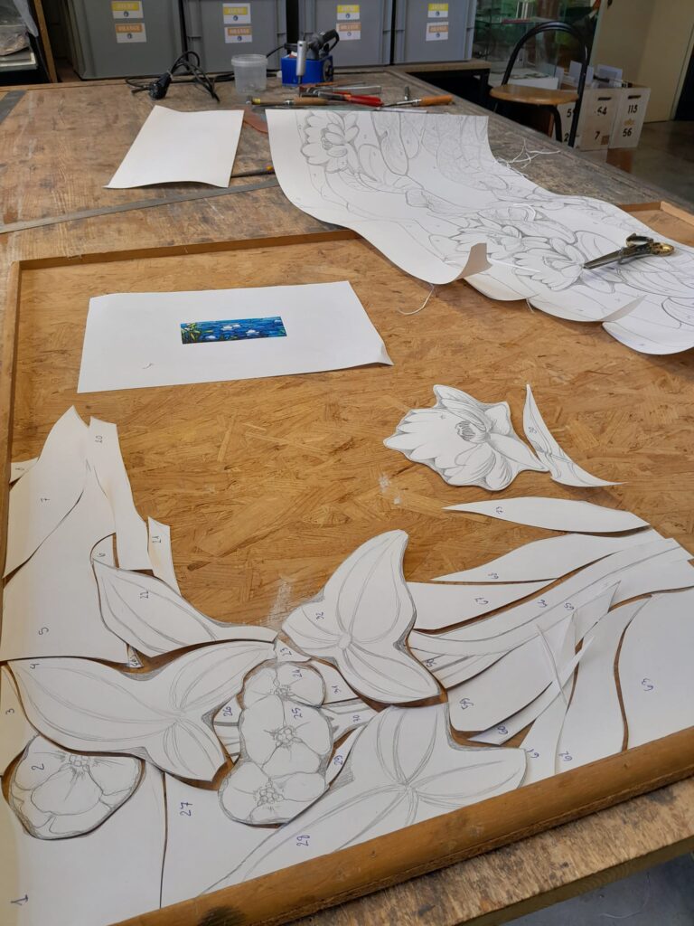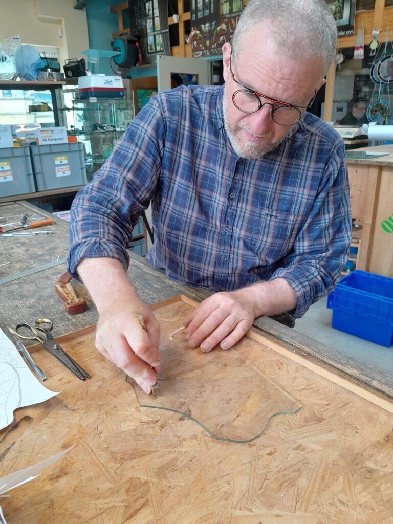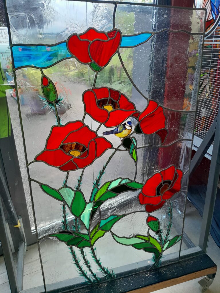 Notre dernière visite sera pour découvrir de l’artisanat : la création et la restauration des vitraux d’Art. Stéphane, maitre des lieux, nous explique les étapes pour concevoir un vitrail, nous montre les matériaux utilisés et quelques créations. Le vitrail des pavots en vitrine attire notre attention et fait l’unanimité : magnifique !